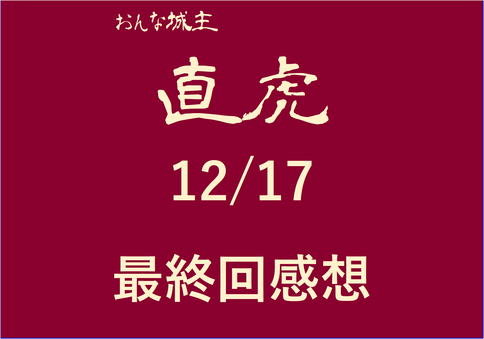 大河ドラマ「おんな城主直虎」 第39話「虎松の野望」【感想】 この記事では大河ドラマ「おんな城主 直虎」の第39話「虎松の野望」の感想と、勝手にMVPを決めています。 今回の第39話のあ …